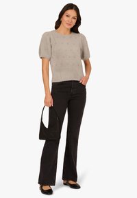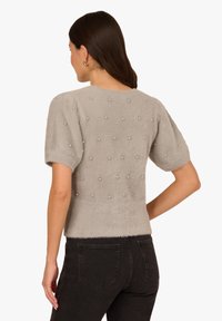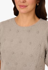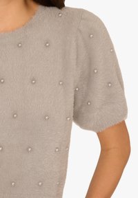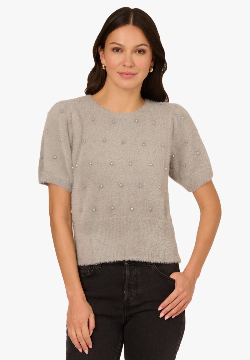 CREW NECK PEARL EMBELLISHED SHORT SLEEVE FUZZY - T-Shirt print - heather grey