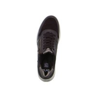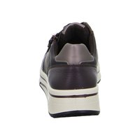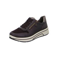Dunkelbrauner Ledersneaker mit beiger Sohle, Schnürung vorne und seitlichem Reißverschluss für einfaches An- und Ausziehen, im Profil vor weißem Hintergrund gezeigt.