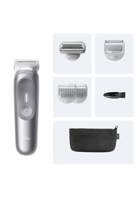 Brauns bester Körperhaartrimmer für Männer ist sanft zur Haut und bietet maximalen Komfort. Dieser kompakte Körperhaartrimmer übertrifft die Effizienz und den Komfort früherer Braun-Trimmer. Die SmartLight-Funktion hilft bei gründlicher Körperpflege und intimem Rasieren. SkinGuard-Technologie minimiert Hautverletzungen und Schnitte. Erreichen Sie sowohl eine glatte Rasur mit dem Präzisionsrasierkopf als auch einfaches Trimmen des gesamten Körpers mit dem sensitiven Kammaufsatz. Der wasserdichte Körperhaartrimmer kann auch in der Dusche verwendet werden und ist dank des komfortablen AquaGrip-Griffs einfach zu handhaben. Der sensitive Kammaufsatz verhindert direkten Hautkontakt mit der Klinge und sorgt für sanftes Trimmen, auch in empfindlichen Bereichen. Lieferumfang: 1 Körperhaartrimmer, 3 Kammaufsätze, 1 Rasieraufsatz, 1 Tasche, 1 Reinigungsbürste.