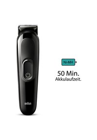 Kümmern Sie sich um Bart, Gesicht und Kopfhaar mit dem Braun All-in-One Styling-Set Serie 3. Ein 3-in-1 Pflegeset für Barthaar und mehr. Das Bartpflege- und Körpergroomer-Set für Männer ist ein Bartschneider, Haarschneider und Haarschneidemaschine in einem und ist ein ideales Geschenk. Mit ultraschärfen Klingen und 50 Min. Akkulaufzeit. Das Paket enthält 1 Trimmer mit Plastikaufsatz, 1 Mini-Präzisionsscherkopf und 1 Gleitaufsatz für den Bart (3-11 mm).