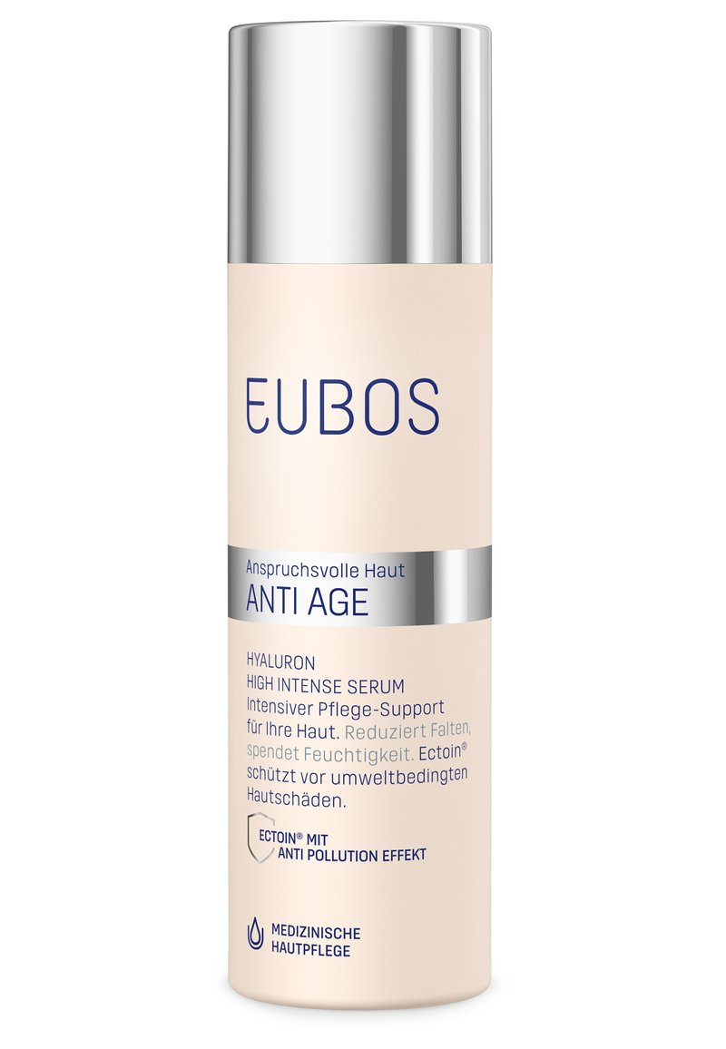 ANTI-AGE HYALURON HIGH INTENSE SERUM. Reduziert Fältchen und feine Linien und spendet zusätzlich Feuchtigkeit. Hochkonzentrierter Wirkstoffkomplex Hyaluronsäure versorgt intensiv und langanhaltend mit Feuchtigkeit und polstert Fältchen auf. Ectoin® spendet zusätzliche Feuchtigkeit, schützt vor Zell und DNA-Schäden und beugt so der Hautalterung vor. Mit Vitaminkomplex und antibakteriell wirkendem Magnolienextrakt. Das Ergebnis: Messbare Zunahme der Hautfeuchtigkeit, Fältchen werden gemindert, das Hautbild geglättet.