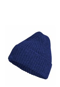Schwarze gestrickte Mütze mit Rippenstruktur, ausgestattet mit Umschlagbündchen und weichem Material, entworfen für Wärme und Komfort.