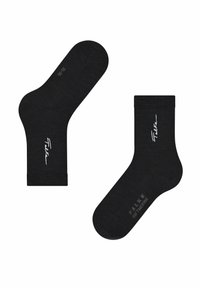 Modischer Strumpf mit angenehmem Tragegefühl durch leichte, klimaregulierende Merinowolle außen und hautschmeichelnde Baumwolle innen; Besonderes Stick-Design auf einem unifarbenen FALKE Softmerino-Strumpf; Eleganter FALKE-Schriftzug als Stickmotiv; Bestandteil der 130-Jahre Jubiläumskapsel; Ebenmäßiges Maschenbild; Optimale Haltbarkeit dank verstärkter Belastungszonen