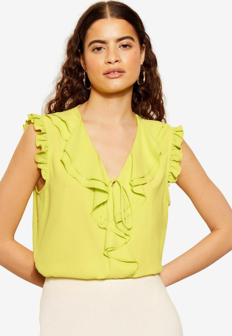 RUFFLE FRONT PUFF SLEEVE REGULAR FIT - Bluse - seersucker lime green