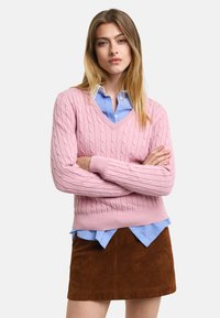 STRETCH CABLE V-NECK - Strickpullover - dusty pink