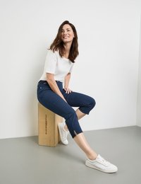 - 74% Baumwolle, 11% Elastomultiester, 11% Polyester, 4% Elasthan