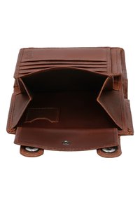 Im Inneren verfügt „Ben“ über ein Geldscheinfach, Platz für bis zu 6 Karten und Münzfach, welches per Druckknopf abgeschlossen wird. So purzelt es nicht ungehindert in die Tasche. Aus hochwertig verarbeitetem Rindsleder wird das Portemonnaie mithilfe von zwei Druckknöpfen verschlossen, die mit zusätzlich mit Laschen versehen sind. Oben findest du eine Öffnung in die du nun die mitgelieferte Hosenkette anbringen kannst. So schützt du dein Portmonnaie zusätzlich vor Langfingern, wenn du sie beispielweise in deiner Gesäßtasche verstaust. Ab in die Tasche oder in deine Jacke und es kann losgehen - mit Brieftasche „Ben“!
