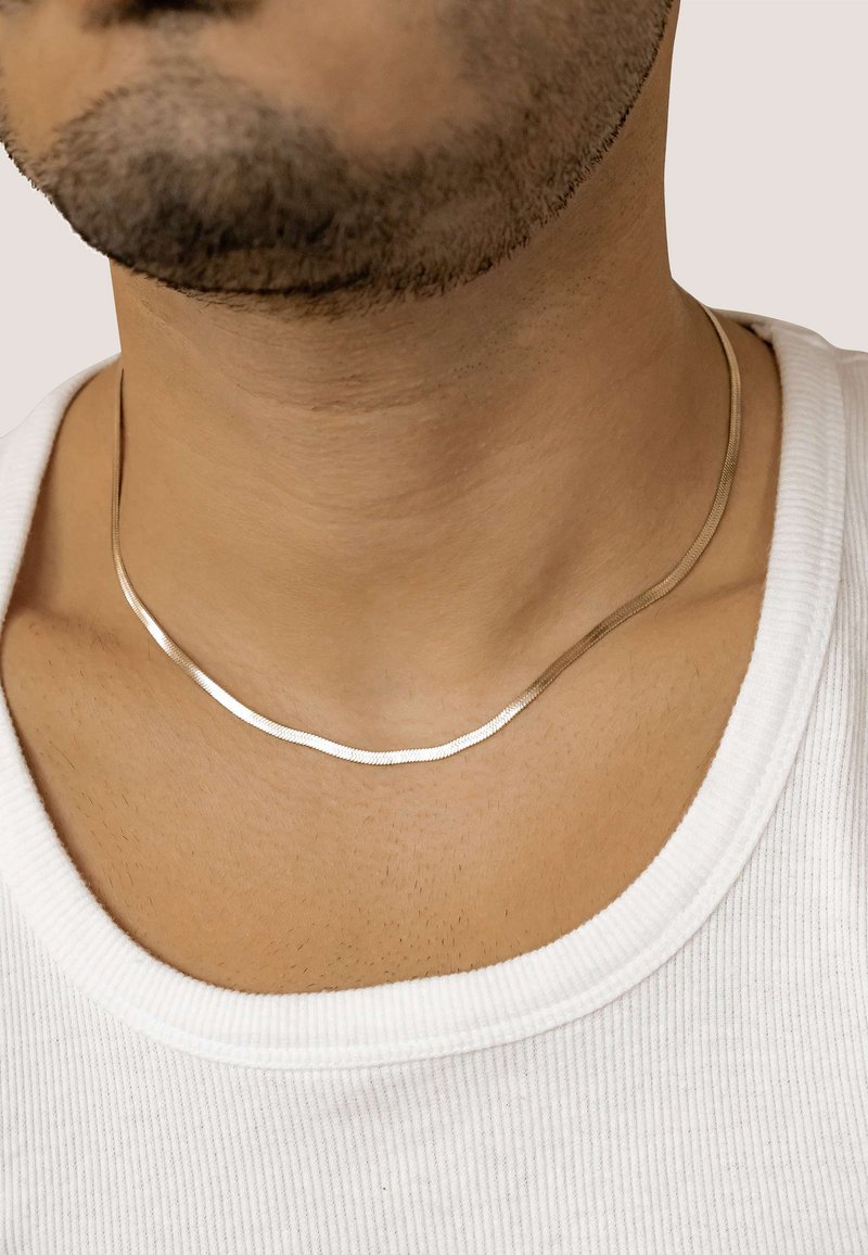 Die Schlangenkette für Männer ist ein vielseitiges Essential für den täglichen Gebrauch. Ihr schlankes, flexibles Design liegt flach am Halsausschnitt und verleiht mühelos Glanz und dezente Stärke. Aus hochwertigem Edelstahl mit langlebiger 18 K Vergoldung gefertigt, ist diese Kette wasserfest, anlaufbeständig und hypoallergen – sie hält lange und ist Tag für Tag bequem zu tragen. Mit einer Länge von 46 cm und einer zusätzlichen Verlängerung von 7,5 cm bietet sie die perfekte Passform für verschiedene Stile und Anlässe. Ideal zum Kombinieren mit Casualwear, einem frischen Hemd oder unter einem Blazer – diese Halskette verkörpert klare, maskuline Eleganz, die nie aus der Mode kommt.