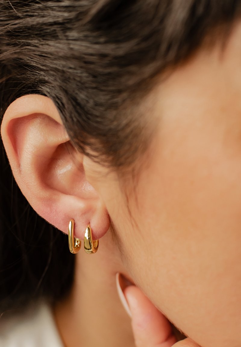 Styling-Tipp: Trage die Dome-Creolen tagsüber für einen minimalistischen Stil und wechsle abends zu den ovalen Creolen für einen eleganten Akzent.