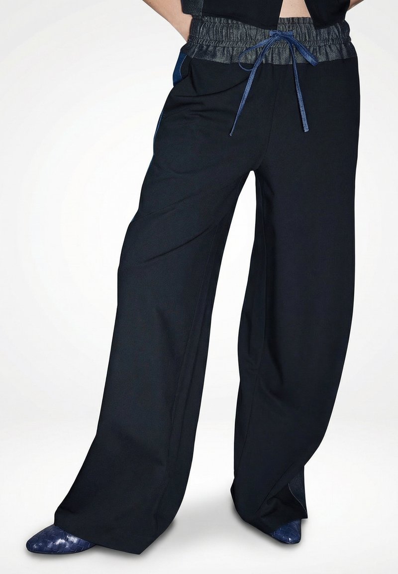 CONTRAST WAIST - Stoffhose - black