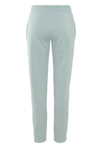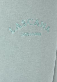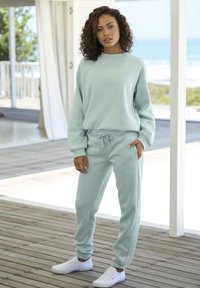 Hellgrünes Sweat-Set bestehend aus einem Sweatshirt mit Rundhalsausschnitt und passenden Jogginghosen mit Kordelzug. Glattes Material mit gerippten Bündchen und Saum.