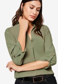 V NECK 3/4 SLEEVE COLLARED - Bluse - black