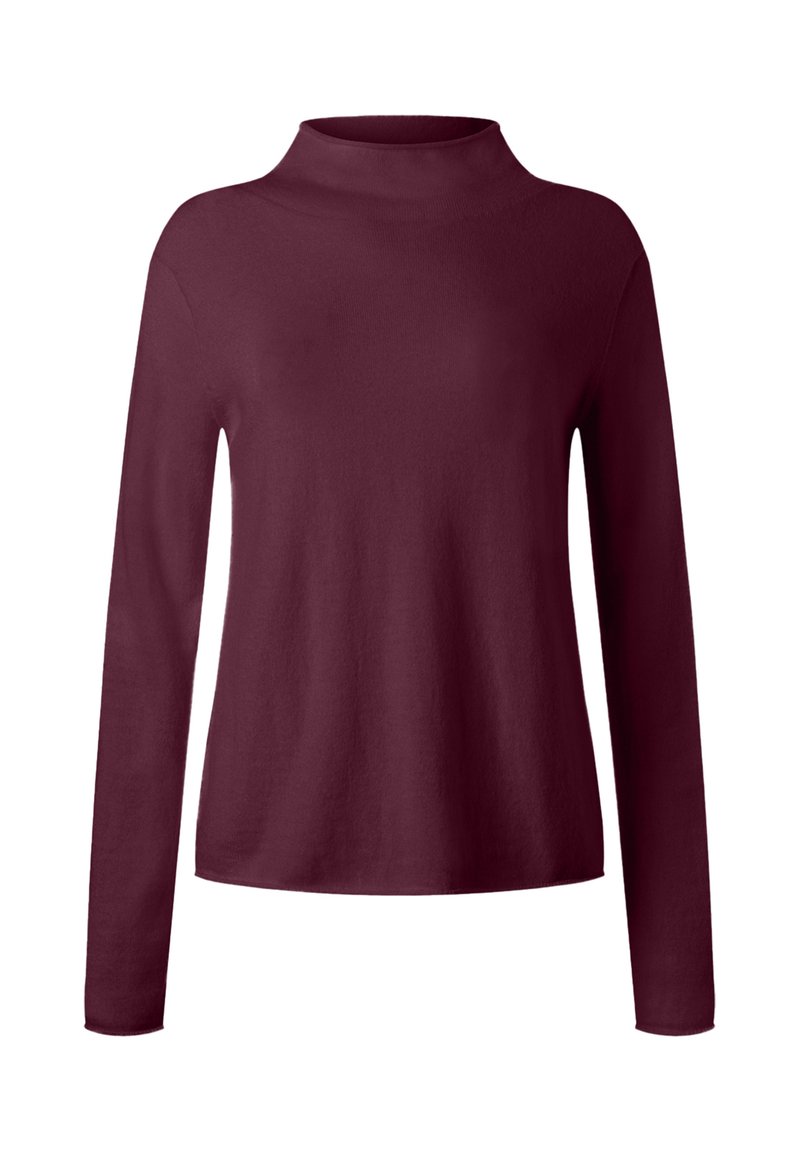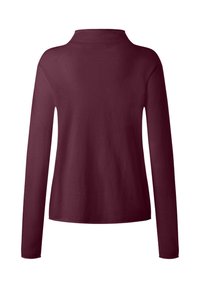 Weinrotes Langarmshirt mit Halbkugelkragen. Hergestellt aus weichem Stoff, bietet es eine entspannte Passform und eine glatte Textur, ideal zum Schichten.