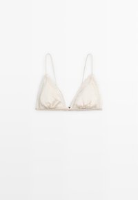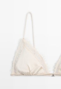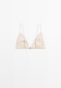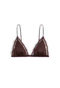 Verstellbare Träger. Rückenverschluss mit verstellbarem Gummizugband. Mit ausgefranstem Saum. Dazu gibt es ein passendes Kleidungsstück. Bralette aus Spitzengewebe .