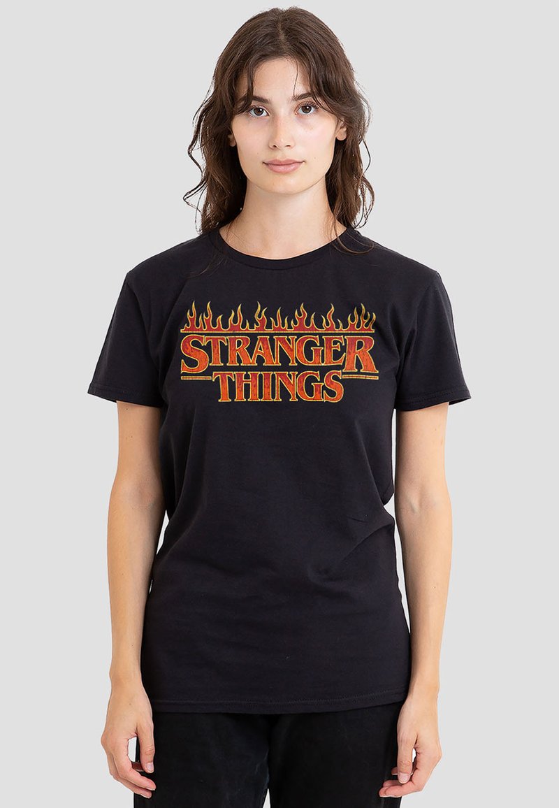 STRANGER THINGS VINTAGE FLAMING LOGO - T-Shirt print - black