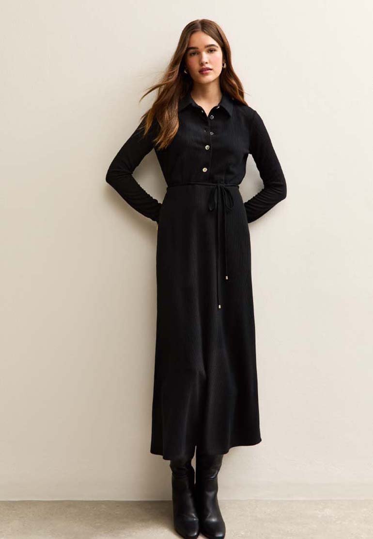 CRINKLED MIDI - Blusenkleid - black