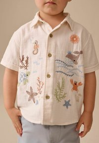 REGULAR FIT - SHORT SLEEVE - Hemd - ecru sea life embroidery