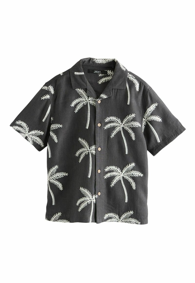 REGULAR FIT - SHORT SLEEVE REVERE COLLAR SHIRT . - Hemd - black palm embroidery