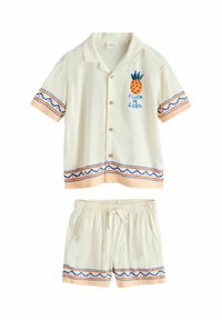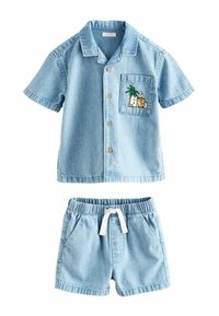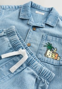 REGULAR FIT - SHORT SLEEVE REVERE COLLAR SHIRT & SHORTS SET . - Jeans Shorts - blue denim palm embroidery
