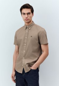 REGULAR FIT - STRETCH OXFORD SHORT SLEEVE - Hemd - stone natural