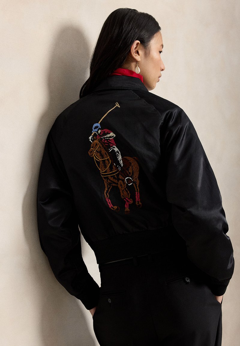 EMBROIDERED SATIN POLO PLAYER JACKET - Bomberjacke - black