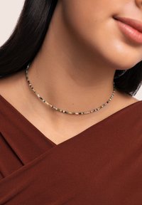 Die Eloise-Halskette aus Natursteinen in den Farbtönen Mauve, Schwarz und Lila ist eine kurze Halskette, die sich perfekt für einen besonderen Anlass eignet.