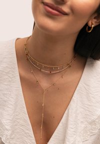 Die perfekte mehrfarbige Halskette für einen tiefen Ausschnitt bei Ihrem nächsten Event. Die Y Mini Stone Colors Halskette besteht aus einer dünnen Kette mit kleinen bunten Steinen. Ein sehr origineller und farbenfroher langer Anhänger.