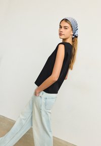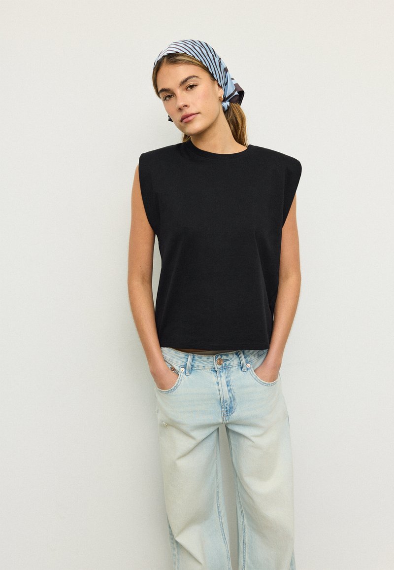 BASIC T-SHIRT WITH PADDED SHOULDERS 02502599 - Top - black