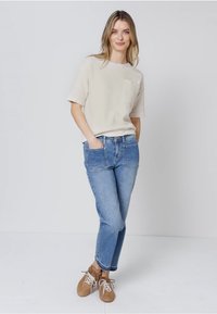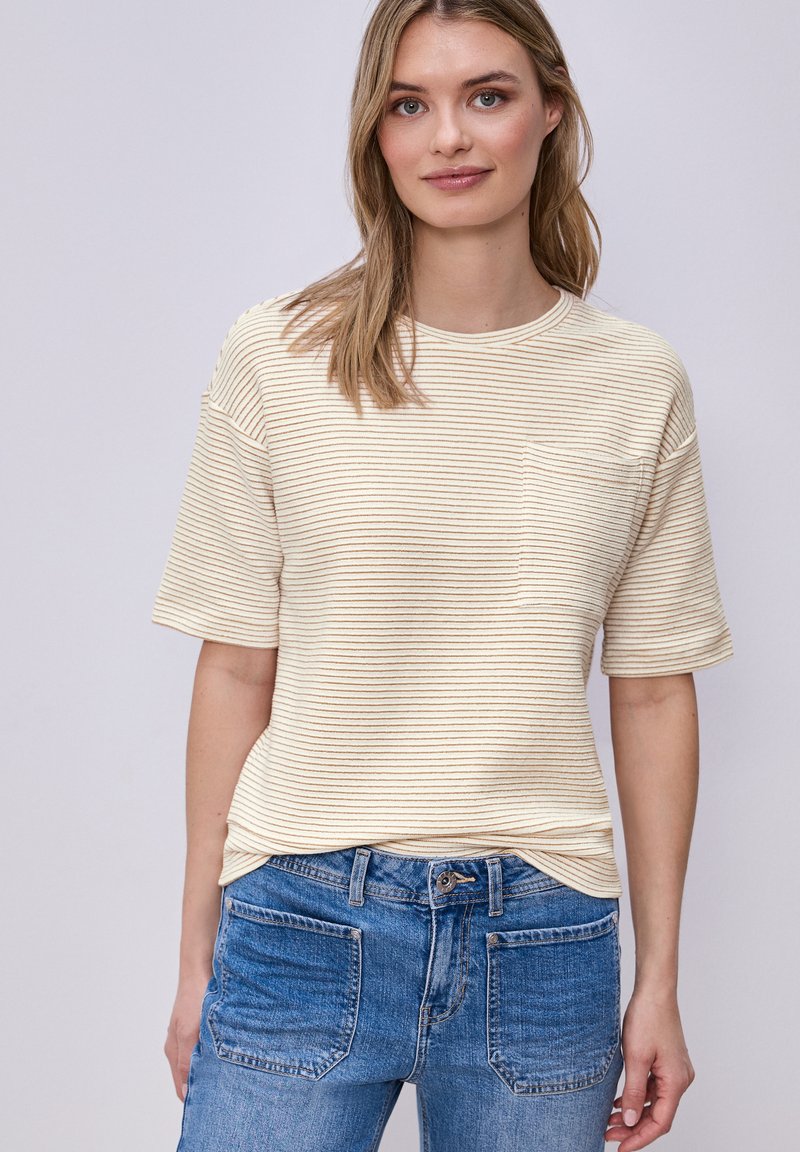 KURZARM MIT STRUKTURSTREIFEN - T-Shirt print - safari beige