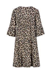 TROPENMUSTER MIT V-AUSSCHNITT UND RÜSCHENARME - Freizeitkleid - braun