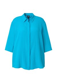 Lila, übergroßes Kurzarm-Hemd mit strukturiertem Stoff und Kragen. Geeignet für legere Anlässe.