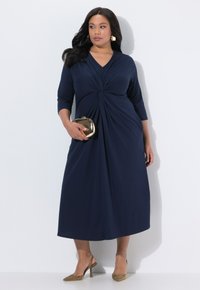 MAXI, DRAPIERT, A-LINIE, V-AUSSCHNITT, 3/4-ARM - Jerseykleid - marine