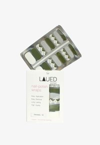 Die veganen Nagelfolien LAUED sind eine einfache und innovative Alternative oder Ergänzung zum herkömmlichen Nagellack. Sie halten auf Natur- sowie lackierten -, Acryl-, Gel- und Shellac-Nägeln. Das Produkt beinhaltet 16 äußerst dünne, selbstklebende Folien. Diese sind hygienisch in einem versiegelten Vakuumbeutel verpackt. Die Folien sind frei beweglich an einem Silberstreifen angebracht, so dass die Passform des Nagelbetts ganz einfach einzeln ausgewählt werden kann. Sie sind selbstklebend und können direkt auf die Nägel geklebt werden. Die Folien können ohne grosse Rückstände entfernt werden und lösen keine Allergien aus.