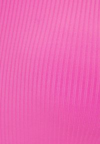 Rosa rippiertes Bikini-Set mit einem Cropped-Top im V-Ausschnitt und passenden tief sitzenden Unterteilen, beide aus einem strukturierten Schwimmsmaterial gefertigt.