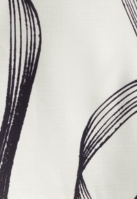 Frau trägt ein ärmelloses, navy-blaues, geschichtetes Midikleid und hält eine weiße Handtasche mit goldenem Griff, sie steht vor einem schlichten hellen Hintergrund.