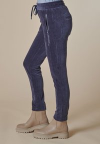 - 58% Baumwolle, 35% Polyester, 5% Metall, 2% Elasthan