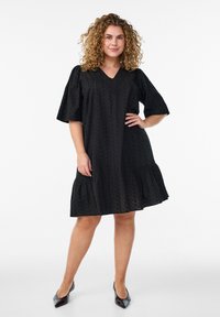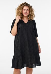 KNIELANGES STICKEREI UND V-AUSSCHNITT - Freizeitkleid - black